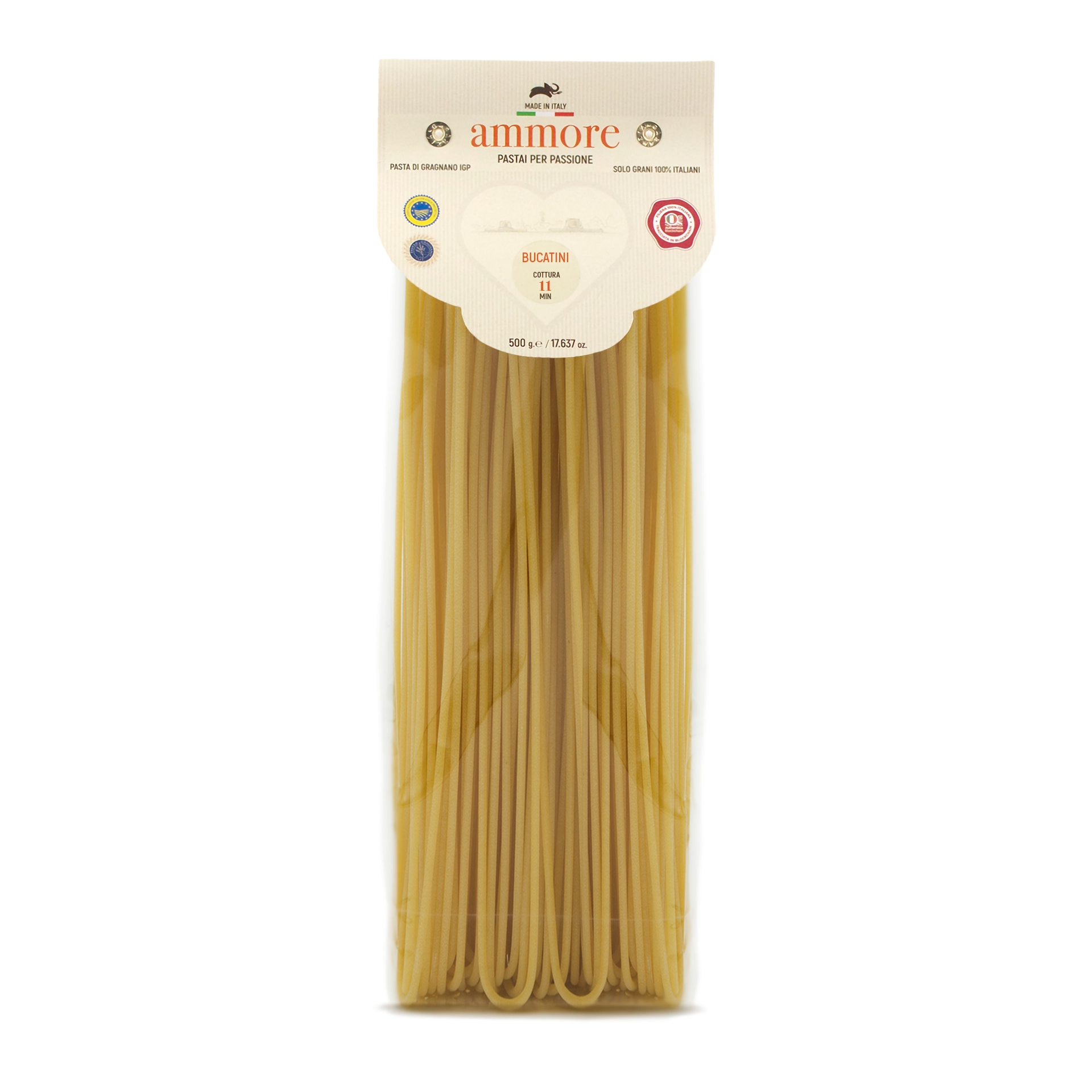 I Bucatini sono formato lungo di pasta di Gragnano IGP, trafilata al bronzo, prodotto nel nostro storico pastificio di Gragnano, con ricetta artigianale utilizzando esclusivamente grano 100% italiano .